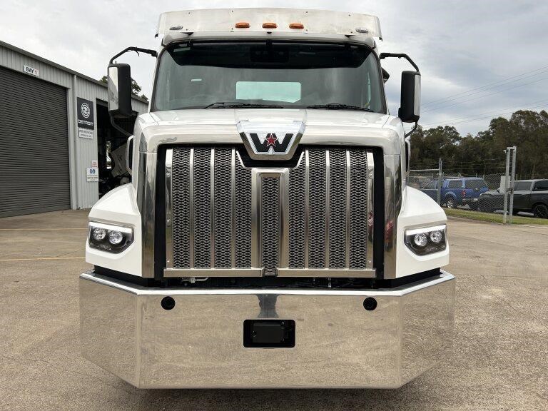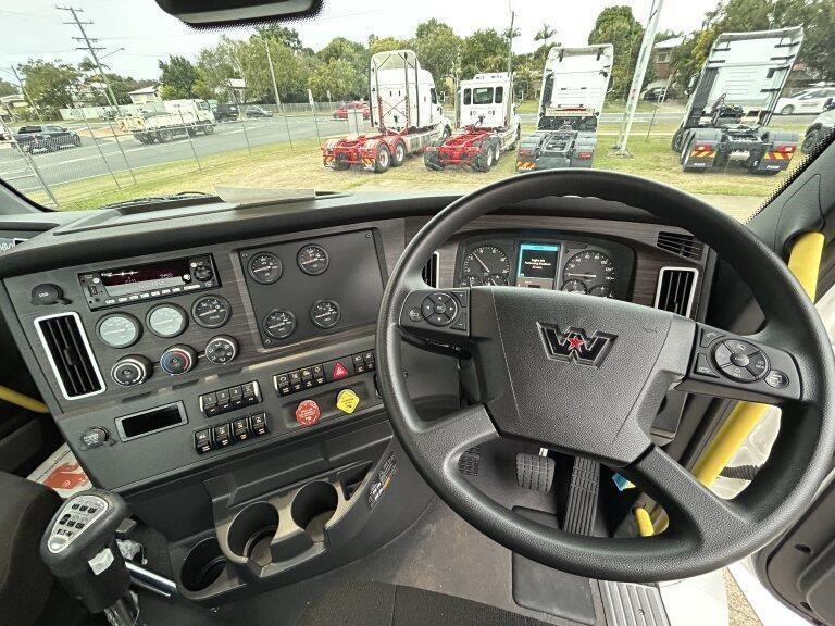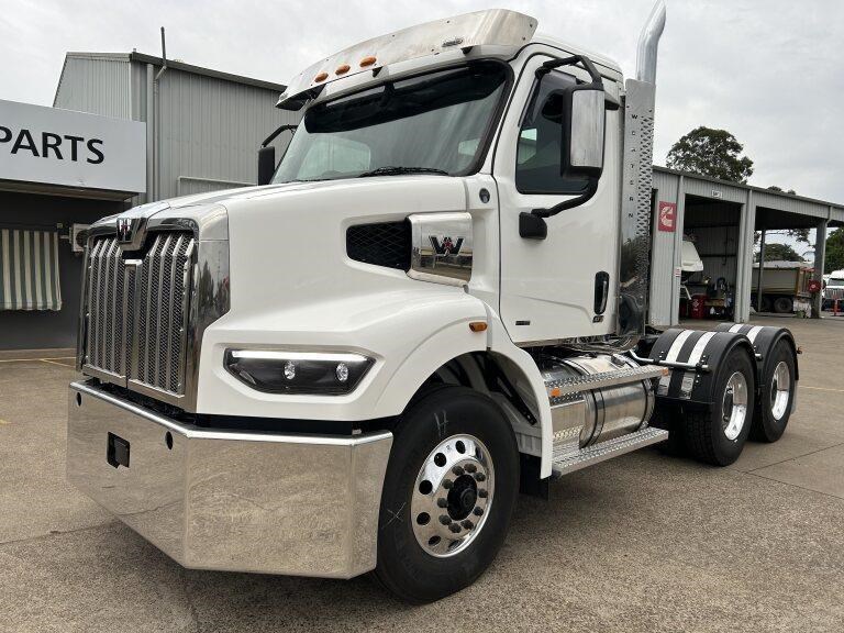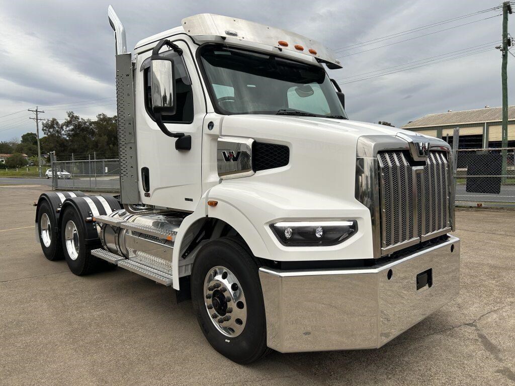 47X Prime mover Day cab, DD13, 525hp @ 1850lb/ft Torque, Roadranger 18 speed transmission, Meritor 46-160 GP diffs with cross locks, 529lts of fuel, Jost fixed turntable, alloy walk plate, plastic guards & UHF radio