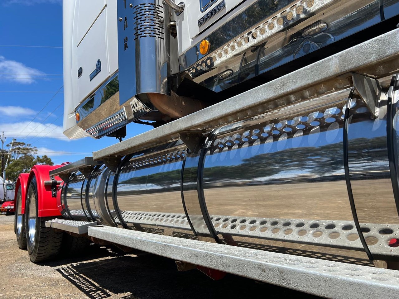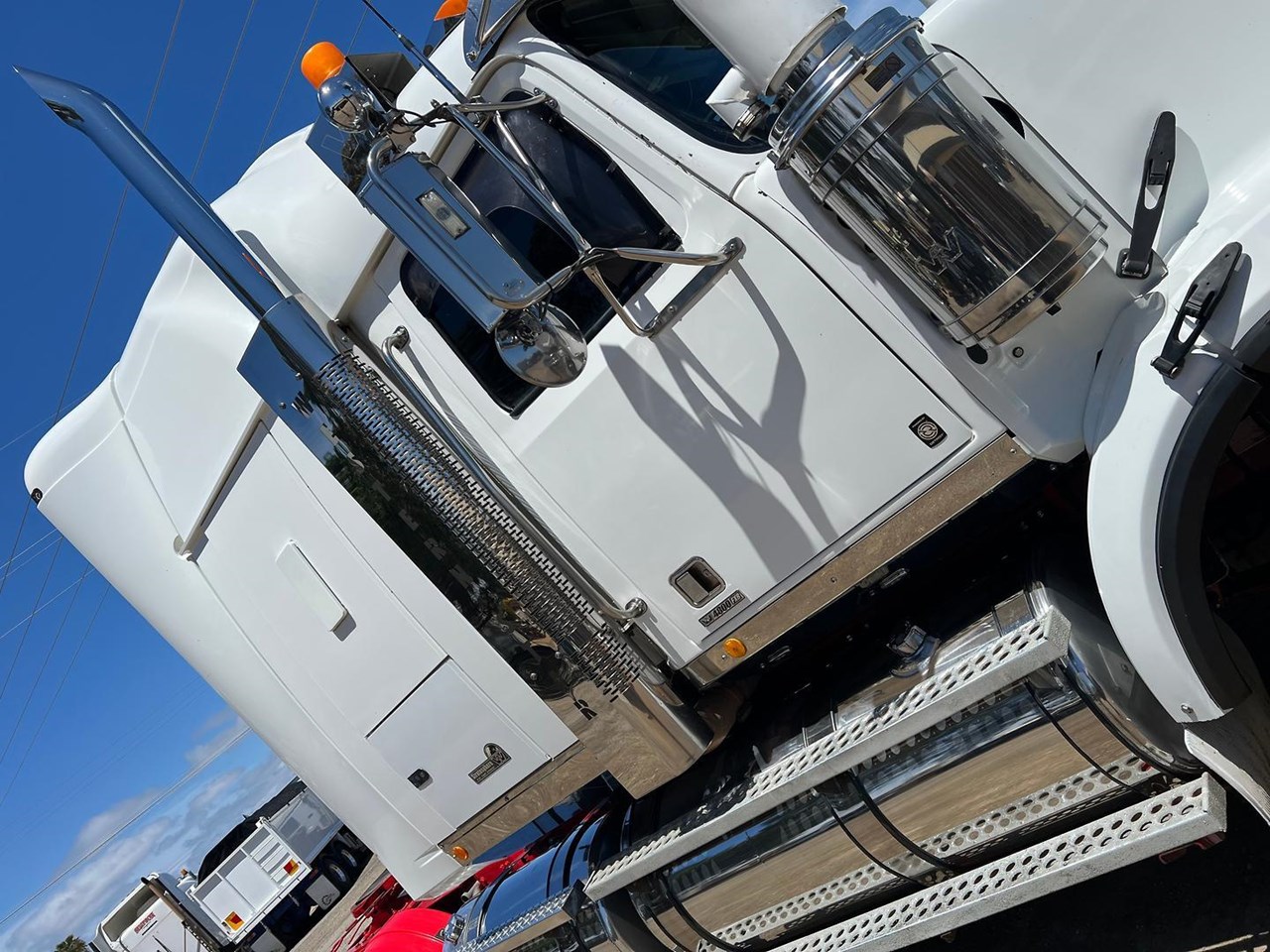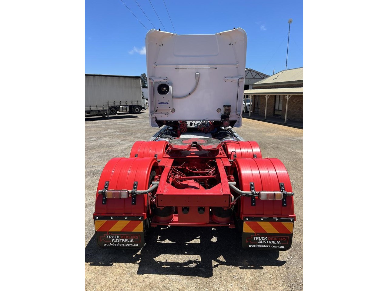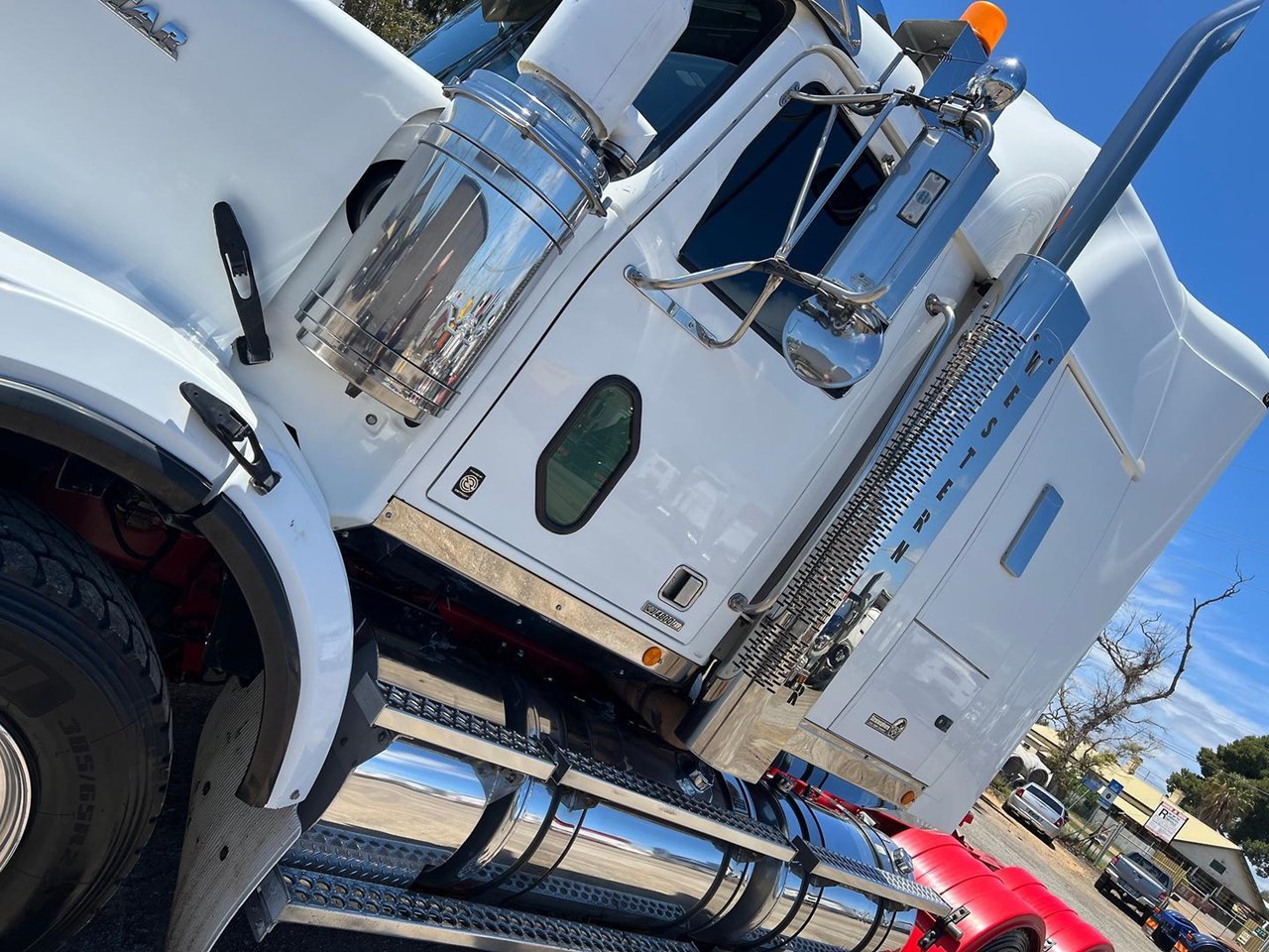 Detroit DD15 @ 560hp, Step Up Engine Rebuild Aug. 22, 200,000kms Ago, 18 Speed Manual ( RTLO20918B) Gearbox, Meritor RT46-160GP Rear Axles on Airliner AL46 Airbag Suspension, Alloy Wheels with Super Singles to the Steer, Plastic Circle Guards, 2" Fixed Holland QRTT, 54" Stratosphere Sleeper with Autoclima Bunk Cooler, Alloy FUPS Bull Bar, Tipper Hydraulics, UHF, Radio/CD, Very Tidy Unit with Engine Rebuild History & 106 Tonne B Double/Road Train GCM.