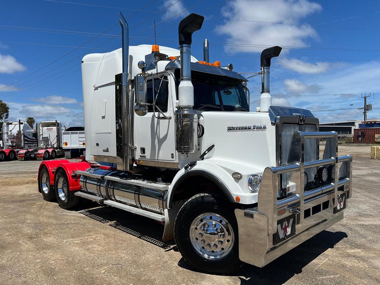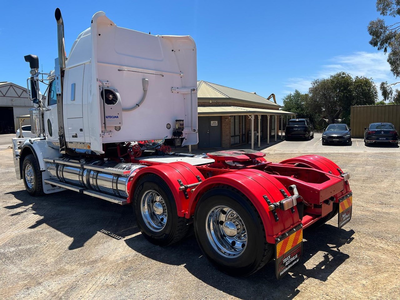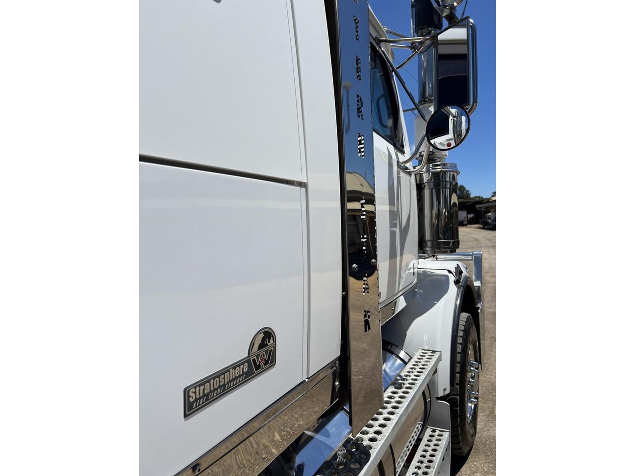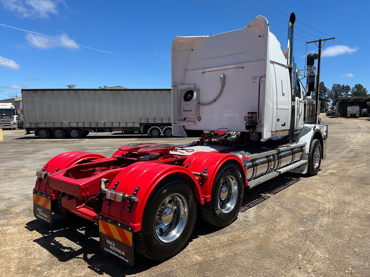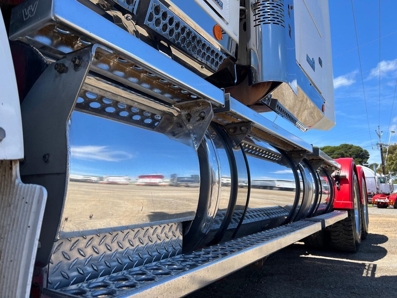 Detroit DD15 @ 560hp, Step Up Engine Rebuild Aug. 22, 200,000kms Ago, 18 Speed Manual ( RTLO20918B) Gearbox, Meritor RT46-160GP Rear Axles on Airliner AL46 Airbag Suspension, Alloy Wheels with Super Singles to the Steer, Plastic Circle Guards, 2" Fixed Holland QRTT, 54" Stratosphere Sleeper with Autoclima Bunk Cooler, Alloy FUPS Bull Bar, Tipper Hydraulics, UHF, Radio/CD, Very Tidy Unit with Engine Rebuild History & 106 Tonne B Double/Road Train GCM.