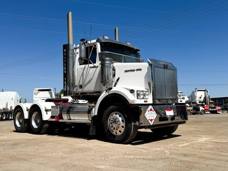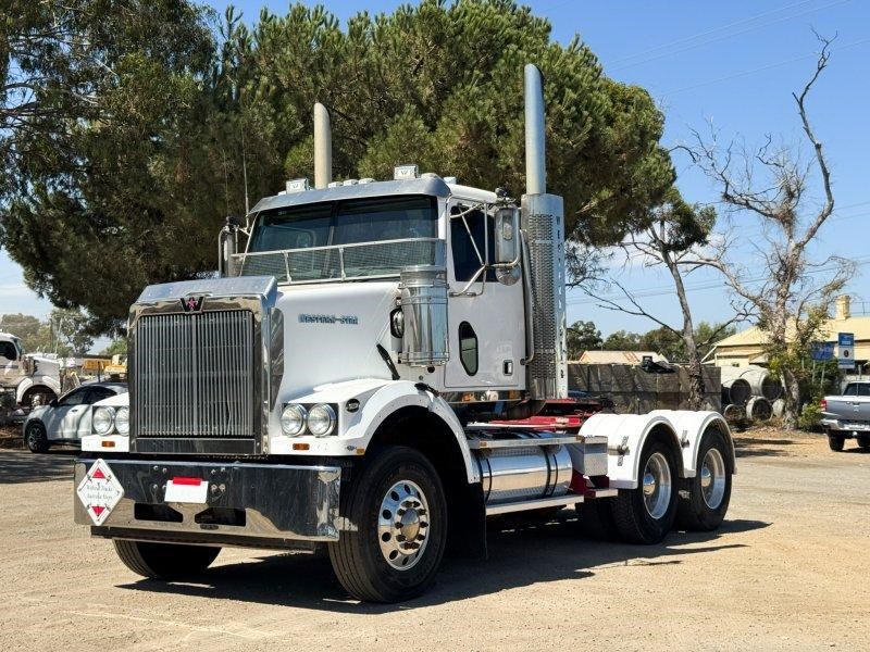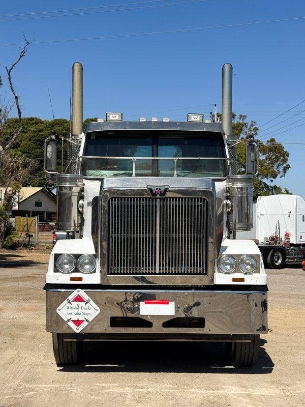 2008 Western Star 4800 6x4 Day Cab Prime Mover, Detroit Series EGR Engine, 18 Speed Manual Roadranger Transmission, Meritor 46/160 Rear Axles, Airliner Airbag Suspension, Jost Ballrace Turntable, Dual Exhausts & Air Intakes, 10 Stud Alloy Rims, Stainless Steel Bug Off,