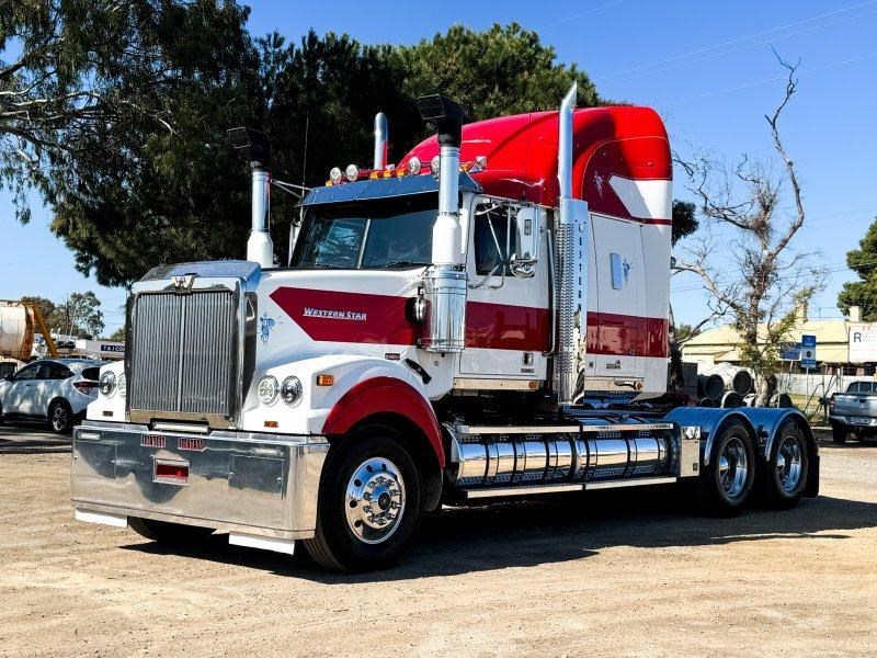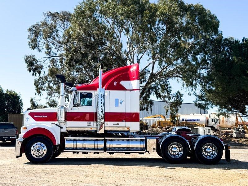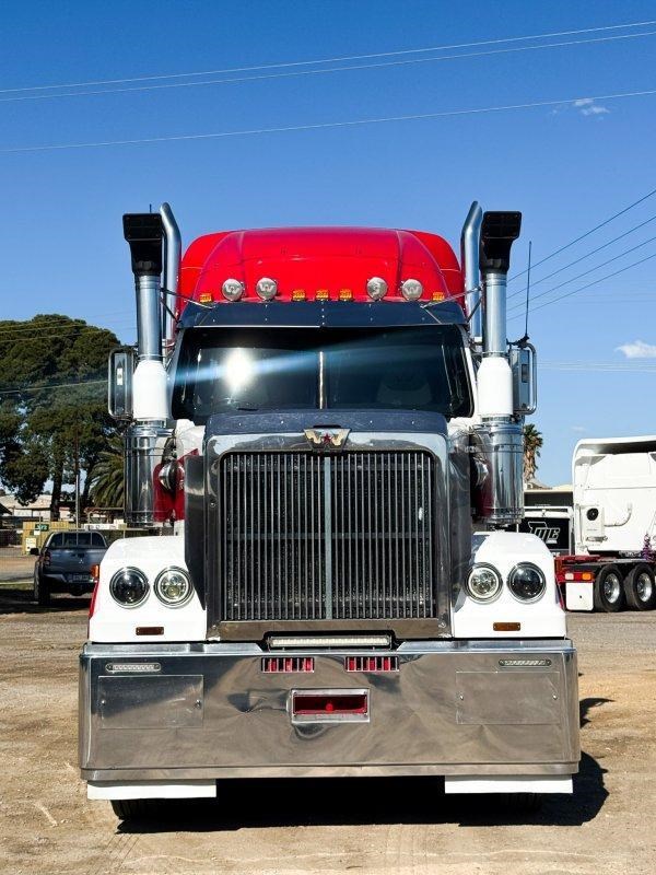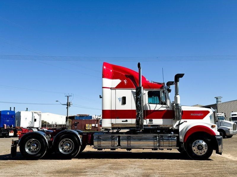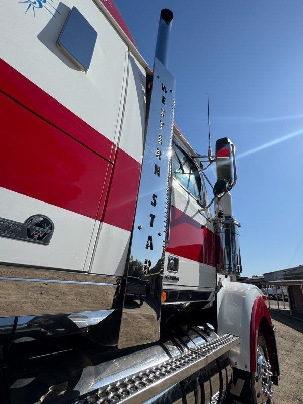 Well-presented Western Star 4900 with Cummins E5 power, Roadranger transmission, bunk cooler, and heavy-duty rating.