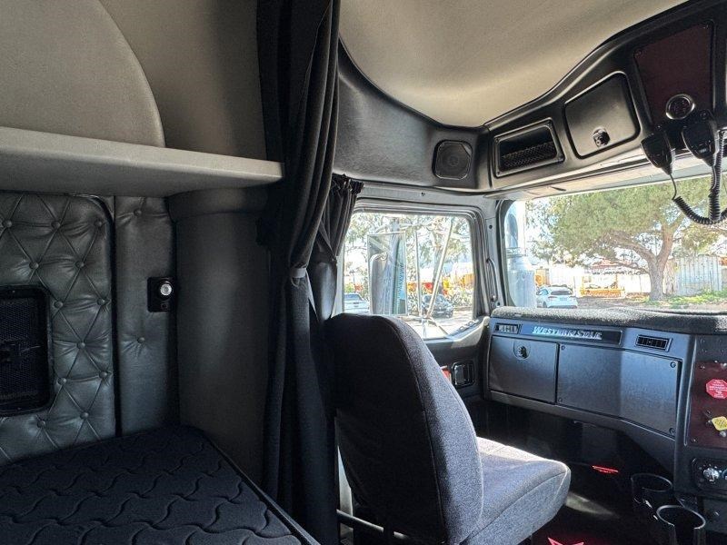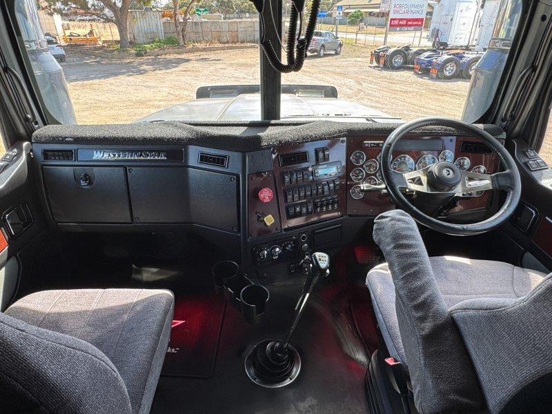 2016 Western Star 4900FXT 6x4 Prime Mover.560 hp Detroit DD15 eng with 18 spd trans-RTL020918B-Meritor RT46-160 rear axles @ 4.30 on Airliner AL46K air bag susp,Alloy wheels and FUPS Bull Bar,Offsets on steer,54" Stratosphere sleeper ,Right Weigh load scales,Diff and X Locks to both rear axles,Alloy walkplate,Sliding 2" QRTT,Rad/cd,UHF x 2,Painted Alloy tanks that hold 1892 is a very tidy 106 ton rated truck that has only ever towed a single trailer.