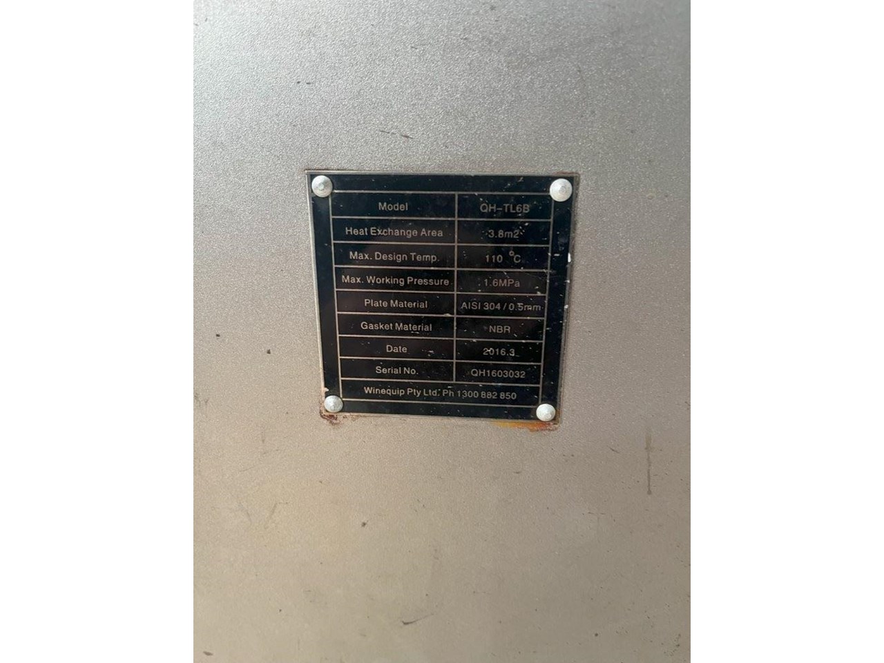 Winequip - Plate Heat Exchanger. Model: QH-TL6B Heat Exchanger Area: 3.8m2 Max Design Temp: 110C Max Working Pressure: 1.6MPa Plate Material: AISI 304 / 0.5mm Gasket Material: NBR