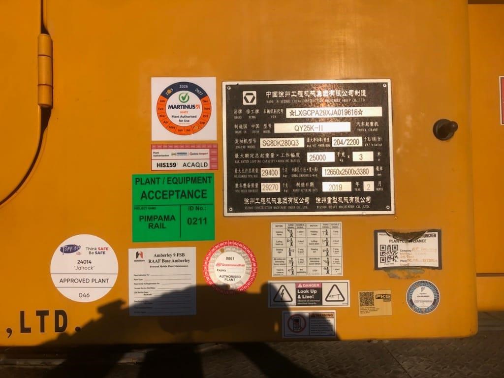 Excellent condition and ready to work! This 25-ton capacity 2019 XCMG QY25K-II comes with Current Crane Safe certification and a full service history.