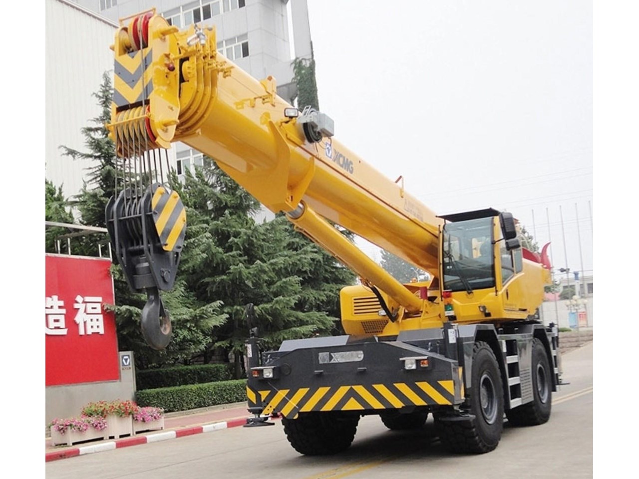 XCR25L5 is equipped with the two-axle loading chassis, which has two types of drive modes, four types of steering modes and backward-forward driving functions. It also has four sections of dodecagon main booms, Jib stowed under boom, H type outrigger, fixed balance counterweight, as well as three working modes, including: hoisting with the support of outriggers, hoisting with the support of tire and hoisting when driving. It is widely used in oil field, mine, road and bridge construction, warehousing base and other construction sites.