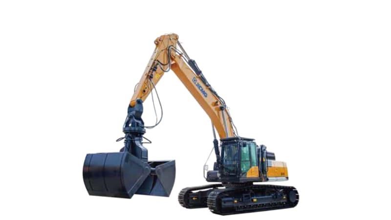 The XCMG XE470M is a material handler designed for heavy-duty applications such as handling scrap steel, bulk materials, and wood in industrial environments like iron and steel enterprises, ports, and freight yards. It is a specialized machine developed by XCMG, optimized for high performance and efficiency in material handling operations.