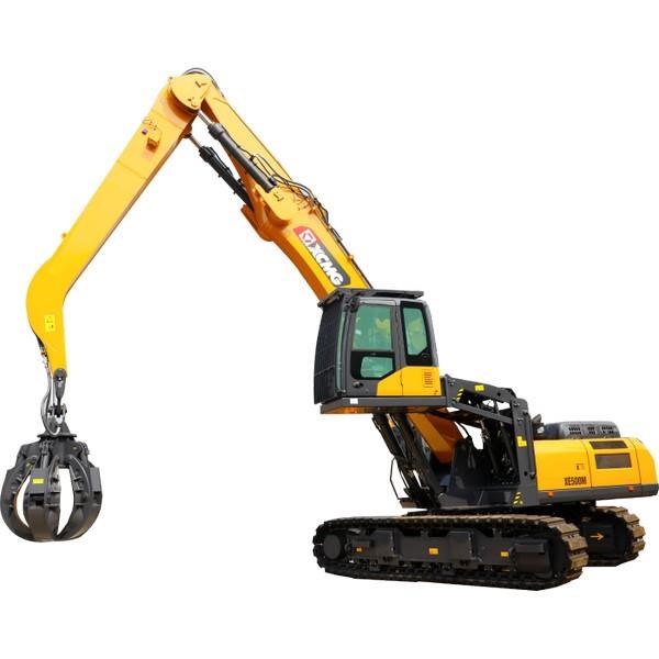 The XE500M is primarily a large, heavy-duty XCMG hydraulic material handler, often used in ports and scrap yards for loading/unloading bulk materials like timber, scrap metal, and logs, with specifications around 50 tons operating weight and powerful engines for demanding tasks. It's part of XCMG's M-series material handlers and is built tough for harsh conditions, featuring large grabs and high lifting capacities, though it's distinct from Motorola's XE500 RSM (Remote Speaker Microphone) for radios.