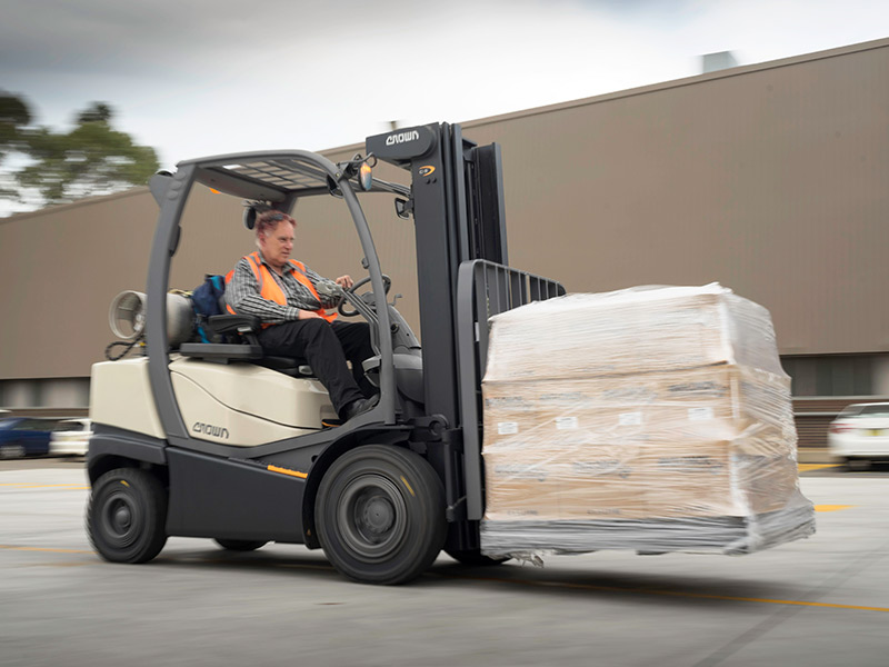 The US-made Crown C5 forklift range has load capacities from 1,800 to 3,000kg with lift heights from 2,060 to 6,100mm. Quad models (four traction wheels) have lift heights to 7,500mm.