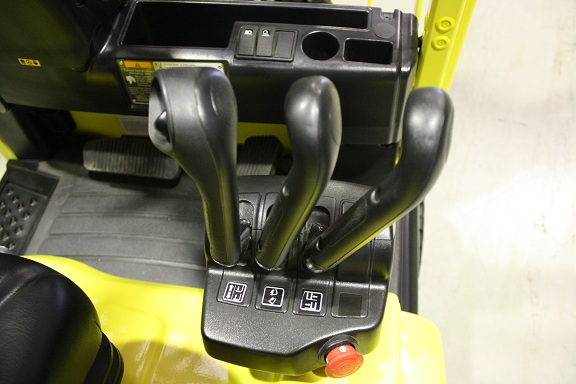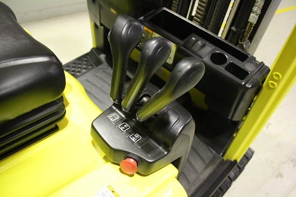 From behind the wheel the baby Hyster had everything in reach in the traditional sense. An operator using the 1.8 for the first time would have no trouble getting used to the layout with the lift, tilt and side shift levers all mounted to the right of the driver’s seat.