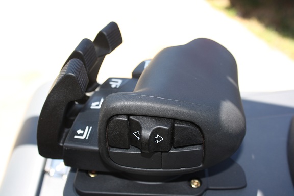 The ergonomic advantages of this are easy to see. I was able to drive the truck forwards and backwards, toot the horn and operate the hydraulic controls, all without removing my hand from the steering wheel or my arm from the armrest. The steering wheel is also adjustable for both height and rake to obtain the best driving position.