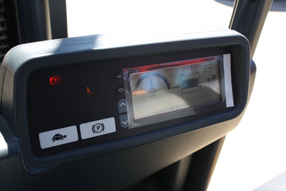 As with other European forklift brands I’ve driven, operator comfort is a high priority. The EFG320 has rubber-mounted cab suspension supporting the driver’s compartment as well as a sprung and very ergonomic seat. Once seated, I was able to adjust the height of the driver’s armrest to a comfortable level, with all of the forward/reverse and hydraulic controls situated at the end of the armrest.