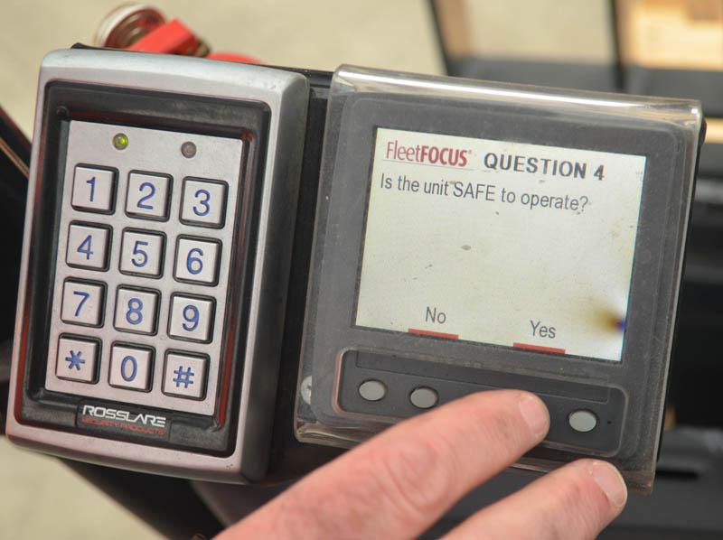On the Linde 39X H25 LPG forklift yu first swipe a card or enter a pin. Then you’re required to go through a digital checklist on the driver’s display before the fun begins. Yes, I have checked the oil. No, there is no damage to the truck. Yes, I would eventually like to drive it …that sort of thing. It’s the future.