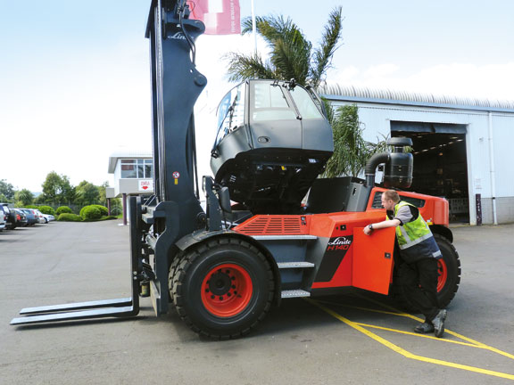 The Linde H140D is part of the new 1401 series of heavy forklifts with capacities ranging from 10 to 18 tonne, built at Linde’s heavy truck division in Wales.