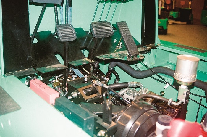Ahead of the rear-hinged shroud is a removable metal floor and rubber mat to directly access the transmission and diff. With these removed and the shroud hinged up, servicing access is the best I’ve ever experienced in a forklift, reducing servicing technicians’ time to get on with the job.