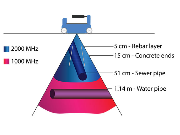 “Traditionally when scanning concrete structures, users would need to choose between two of the most popular frequencies – one for anomalies within the concrete and another for anomalies beyond the concrete layer,” Position Partners geospatial product manager Cameron Waters says.